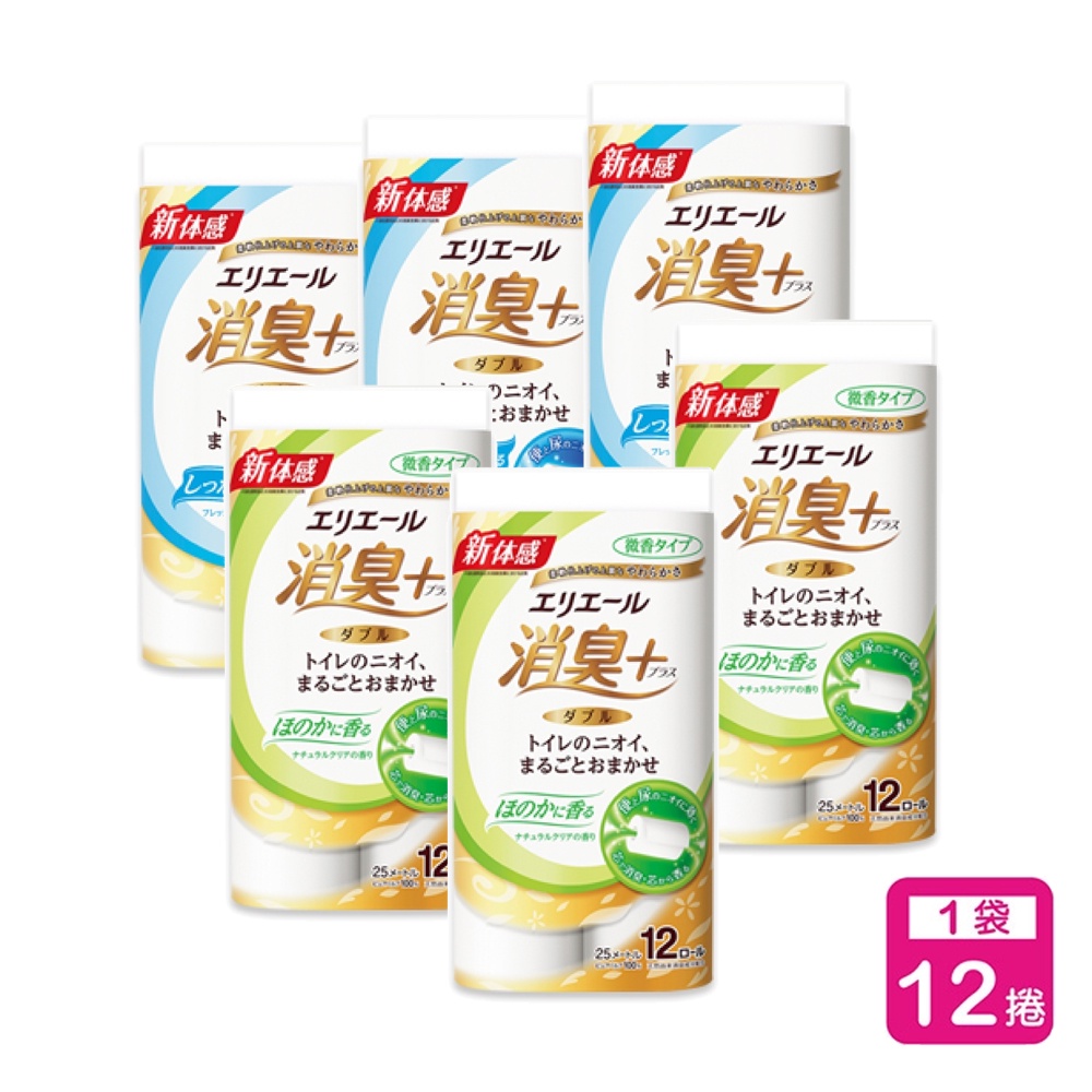 日本大王elleair 抑臭+天然淨味捲筒衛生紙_潔淨舒香型/清雅微香型 (12捲/包) (箱購6包) 廁所廁紙可溶水