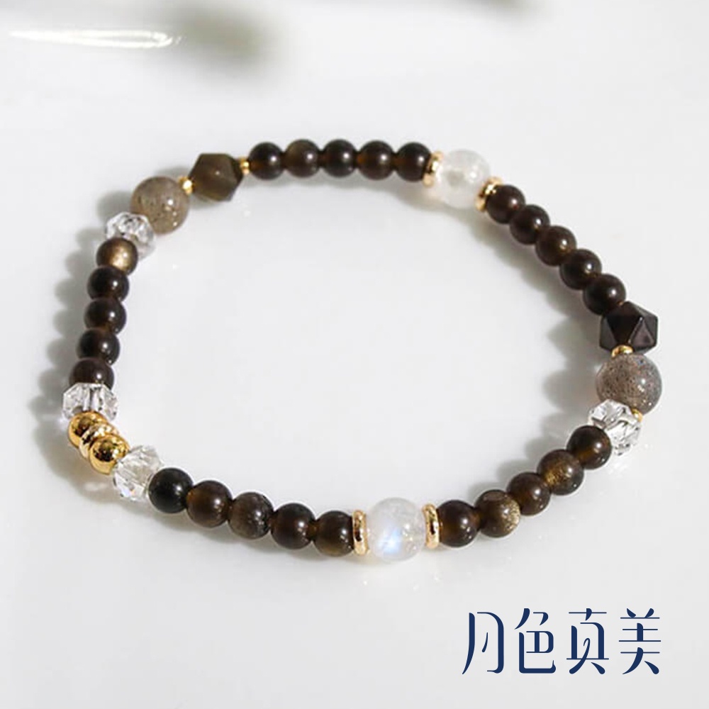 【月色真美】印地安人的捕夢網 | 擋煞除晦 x 健康紓壓 | 黑曜石 拉長石 白水晶 手鍊 A44