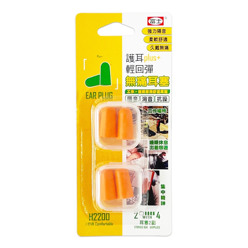 富士 護耳plus+輕回彈無痛耳塞 (2副) 耳塞 防噪音 防高分貝 泡棉耳塞 H2200