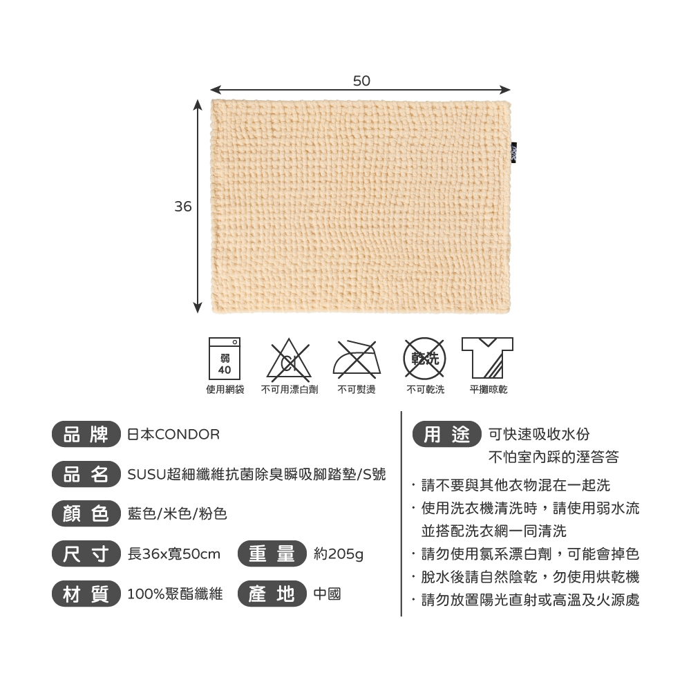 【日本山崎】SUSU超細纖維抗菌除臭瞬吸腳踏墊/36x50cm/S號/三色米色|粉色|藍色Carpets & Rugs日本山崎 CONDOR 台灣旗艦店