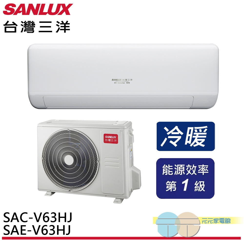 (輸碼95折 HEMAL95AG)SANLUX 台灣三洋 變頻冷暖分離式冷氣SAE-V63HJ/SAC-V63HJSAE(C)-V63HJCooling元元生活家電館
