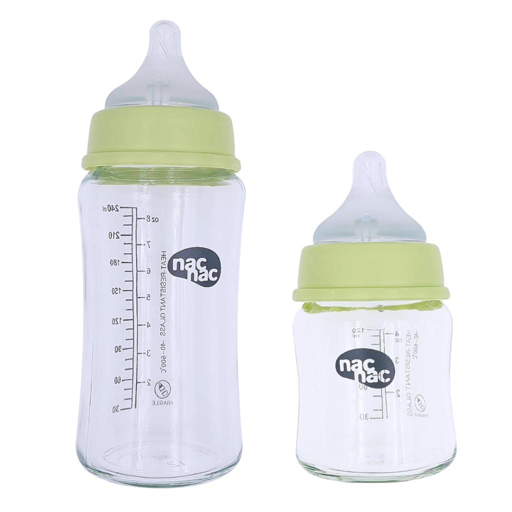 nac nac 妍心35%晶透防脹氣玻璃寬口奶瓶120ml 240ml-茉莉綠120ml|240mlBottle-feeding山夜貓頭鷹親子生活館