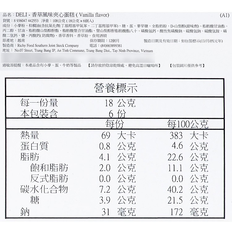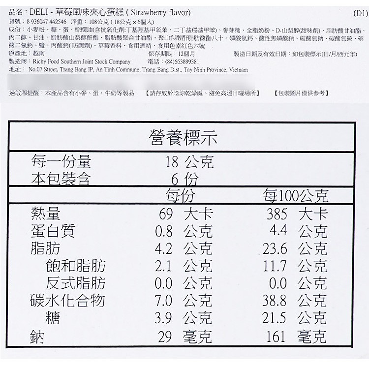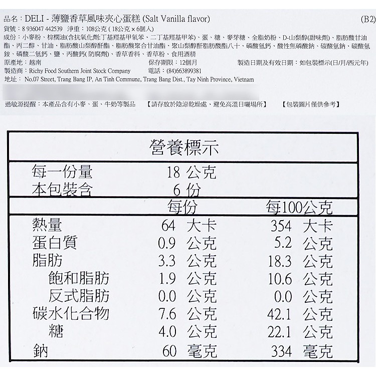 越南 DELI 鹽香草/香草/草莓/抹茶 風味夾心蛋糕(108g) 【小三美日】團購/點心 D442539鹽香草風味|香草風味|草莓風味|抹茶風味Cakes & Pies小三美日