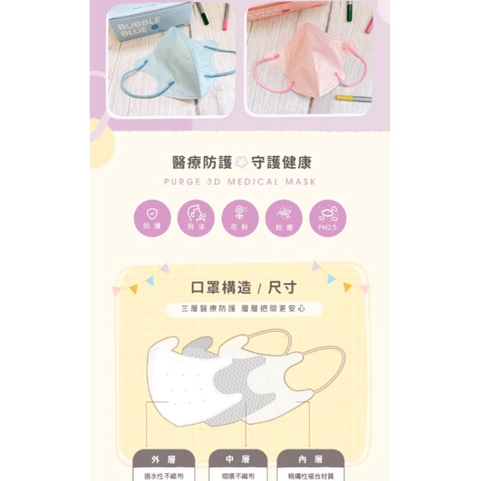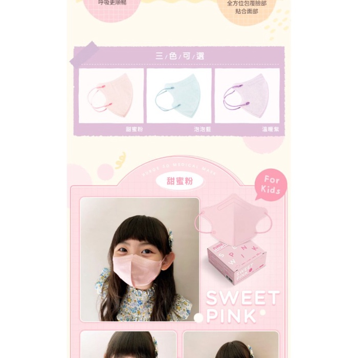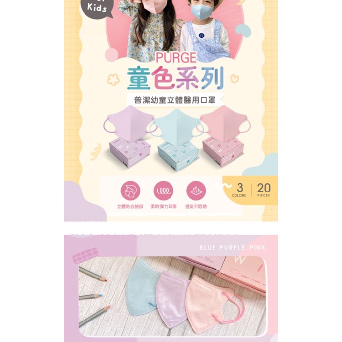 PURGE 普潔 幼童款醫用3D立體口罩(20入)童色系列 款式可選 幼童口罩 台灣製口罩【小三美日】DS011408甜蜜粉|溫暖紫|泡泡藍Medical Gloves & Masks小三美日
