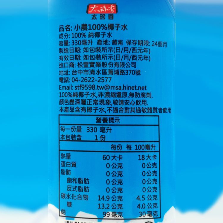 太珍香 小農100%椰子水(單罐)330ml COCONUT WATER 飲品【小三美日】空運禁送 DS022953單一Juice & Juice Vinegar小三美日