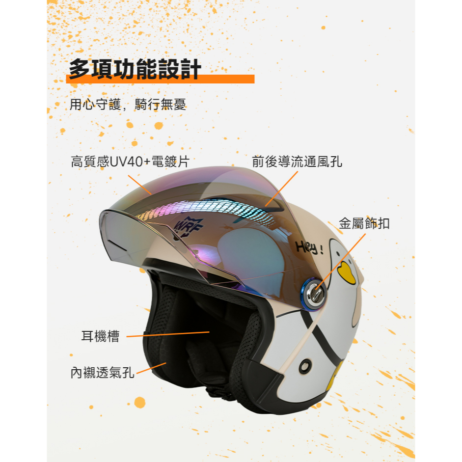WRF 沃狼 安全帽 可調式復古帽 彩繪款 HI鴨米色 復古帽 內襯全可拆 透氣 耳機槽 金屬插扣 半罩HI鴨米色,XS:53~54cm-贈專用彩片|HI鴨米色,S:55~56cm-贈專用彩片|HI鴨米色,M:57~58cm-贈專用彩片|HI鴨米色,L:59~60cm-贈專用彩片|HI鴨米色,XL:61~63cm-贈專用彩片|HI鴨米色,2XL:63~64cm-贈專用彩片比帽王 騎士用品專賣店