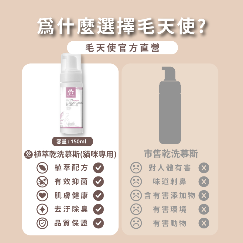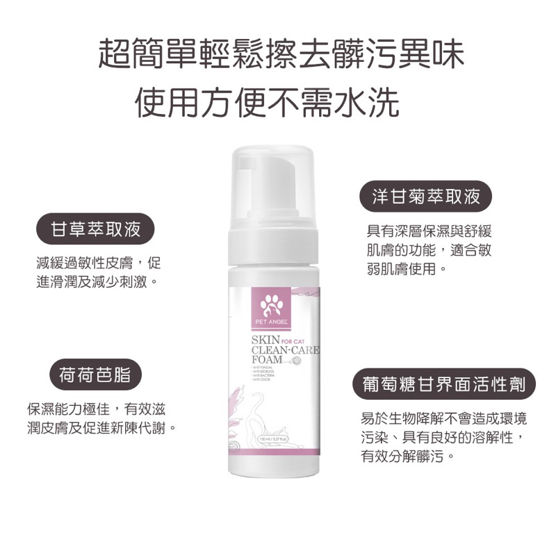 【毛天使 】貓用植萃乾洗泡沫(150ml/寵物乾洗)貓洗澡/乾洗澡/抑菌乾洗泡沫/貓咪乾洗沐浴露/貓用PET ANGEL貓用乾洗慕斯 1入Hair Care毛天使PetAngel官方旗艦店