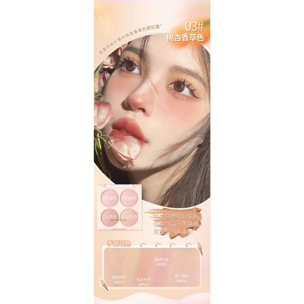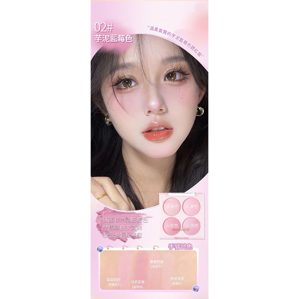 MINSHZEE 茗希芝 繽紛甜顏四色腮紅盤(10g) 款式可選【小三美日】DS02179301蜜桃糖果色|02芋泥藍莓色|03桃杏香草色Face小三美日