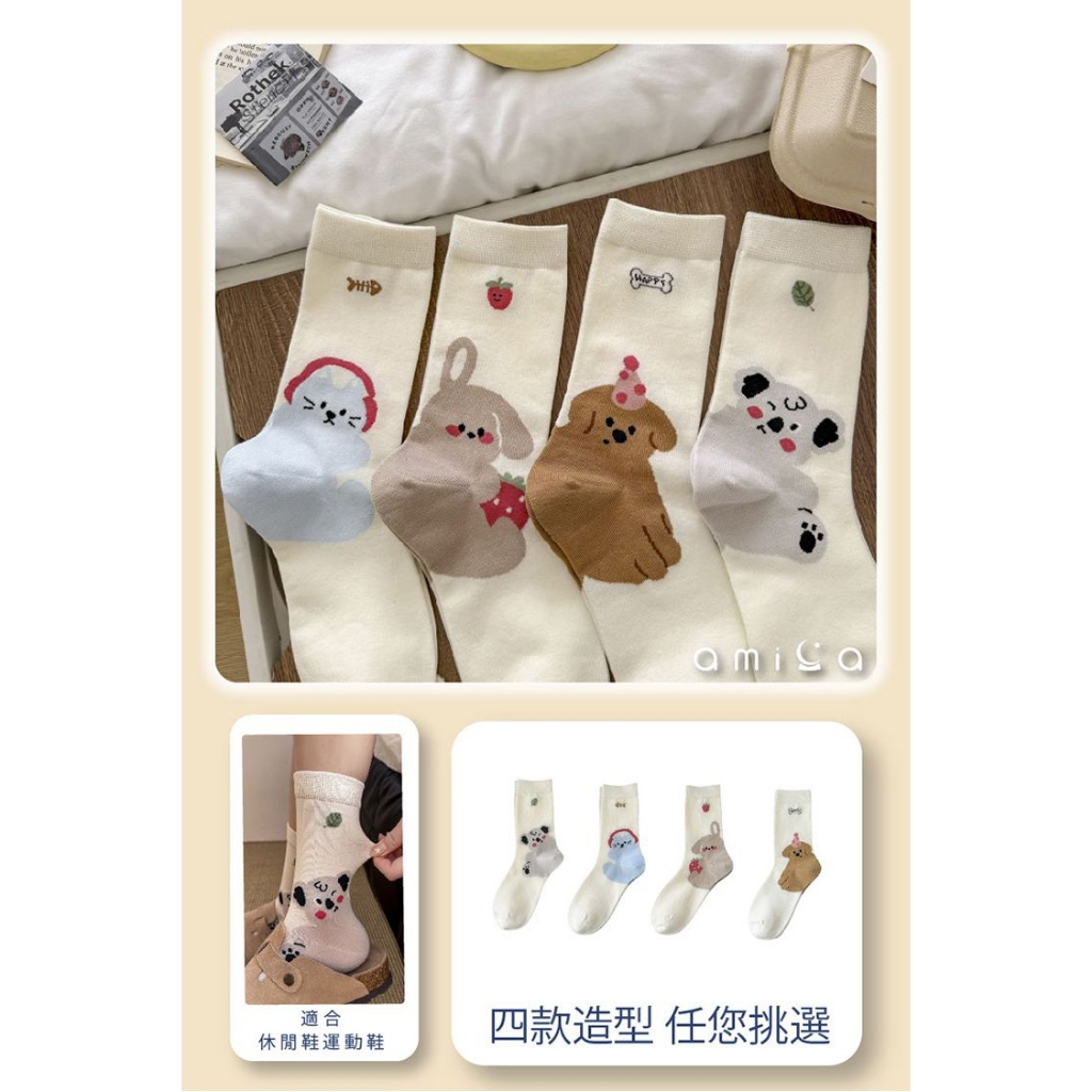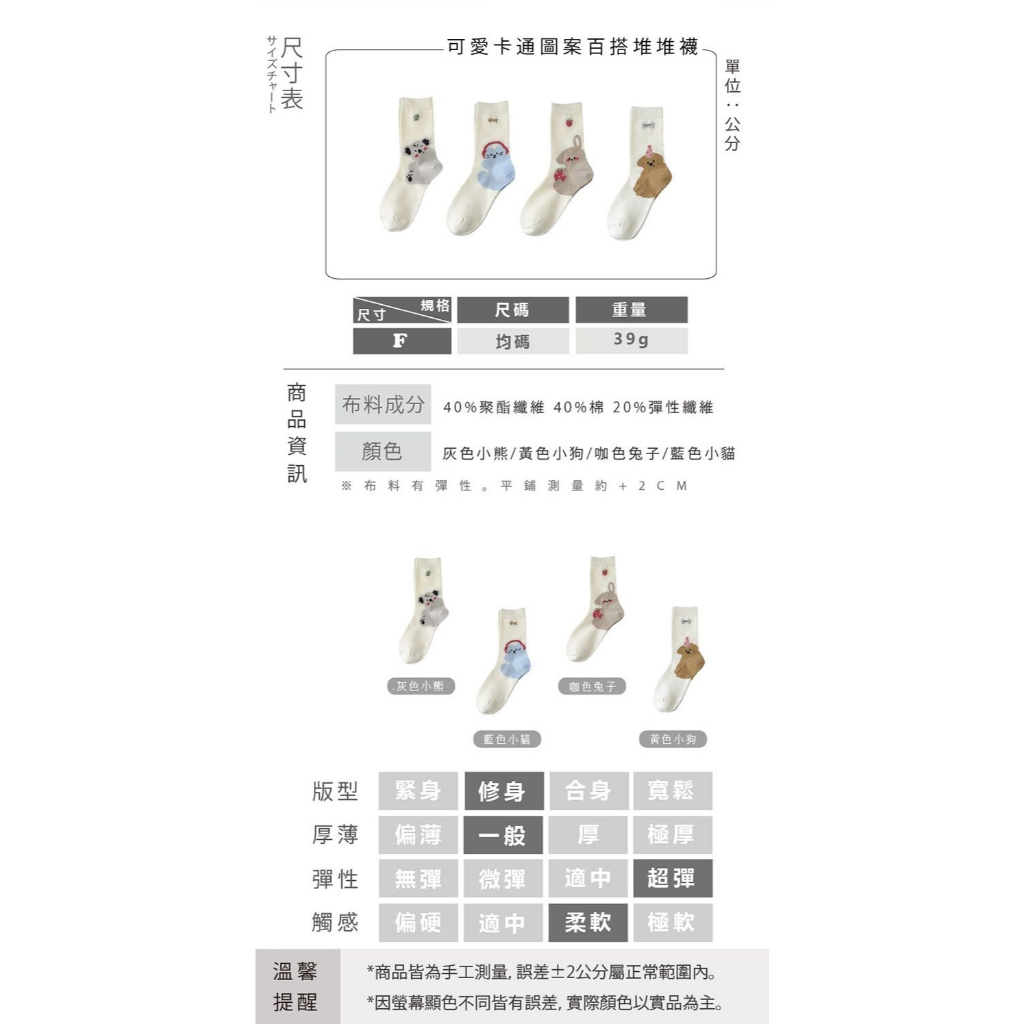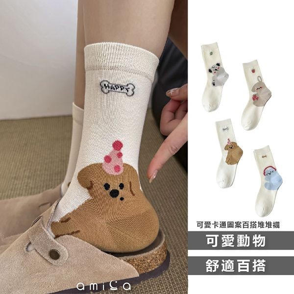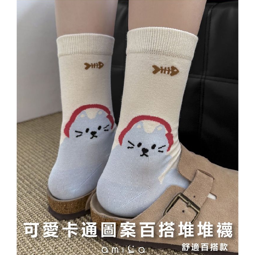 AMICA A2-11#可愛卡通圖案 百搭 堆堆襪 1雙入 女襪 襪子 透氣 親膚 造型襪【小三美日】DS026996灰色小熊|黃色小狗|咖色兔子|藍色小貓Socks小三美日