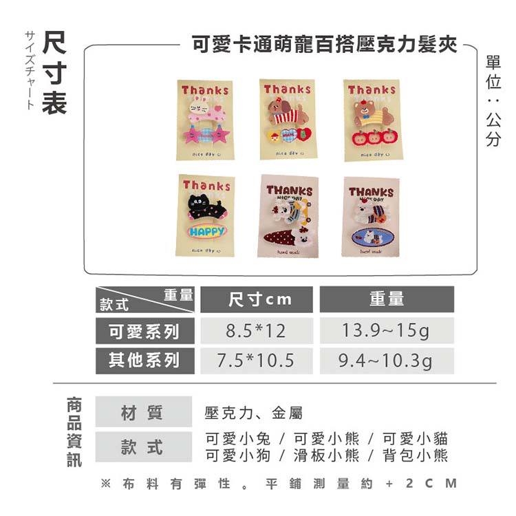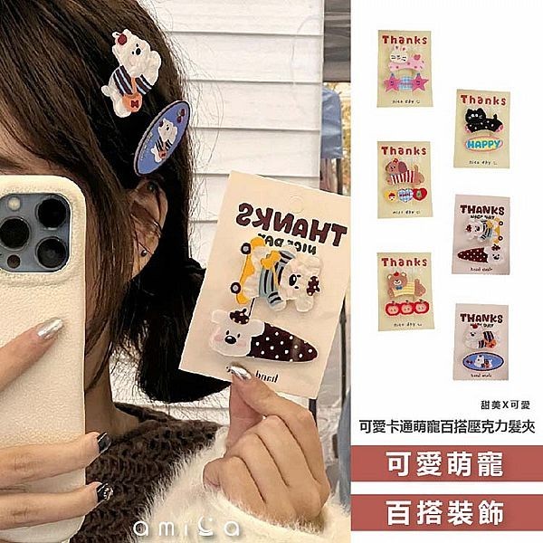 AMICA FJ1591#可愛卡通萌寵 百搭 壓克力 髮夾 1入 髮飾 瀏海夾 邊夾 化妝夾【小三美日】DS027051可愛小兔|可愛小熊|可愛小貓|可愛小狗|滑板小熊|背包小熊Hair Clips & Hair Pins小三美日