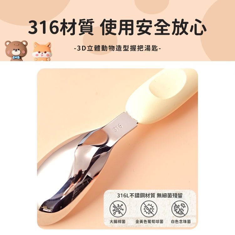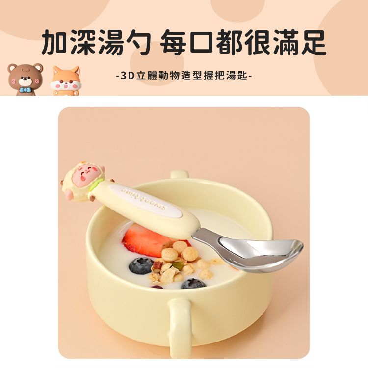 316不鏽鋼 動物造型 湯匙 (1入) 吃飯 兒童餐具 可愛湯匙 湯勺 小孩吃飯 勺子 【小三美日】DS026087小熊|小鹿|狐狸|小豬|小兔Utensils小三美日