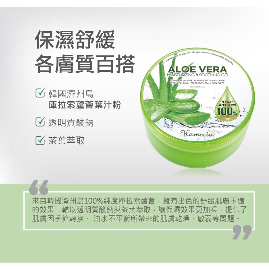 Kameria凱蜜菈 100%濟州島蘆薈保濕凝膠300ml 【仁仁藥局】蘆薈 保濕 曬後舒緩 一瓶多用濟州島蘆薈保濕凝膠300mlAfter Sun Face Care仁仁藥局線上購物