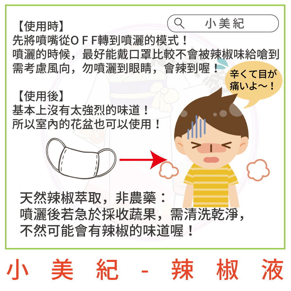 【小美紀】天然植物驅蟲液(園藝資材)蒜頭 皂素 辣椒驅蟲液 木醋 苦茶籽 花公主辣椒水 病蟲害防治 植物病蟲 介殼 白粉花公主-天然木醋液-真菌用|濃縮瓶-無蹤影-蝸牛及軟體生物用|花公主-蒜頭驅蟲液-小蟲用|花公主-辣椒液-小蟲用|小美紀-辣椒驅蟲液4公升補充瓶|小美紀-辣椒驅蟲液500ml-小蟲用|小美紀-鈣厲害500ml-真菌感染保護用|小美紀-吉得善500ml-根腐消毒Pest & Weed Control小美紀 l Komiki