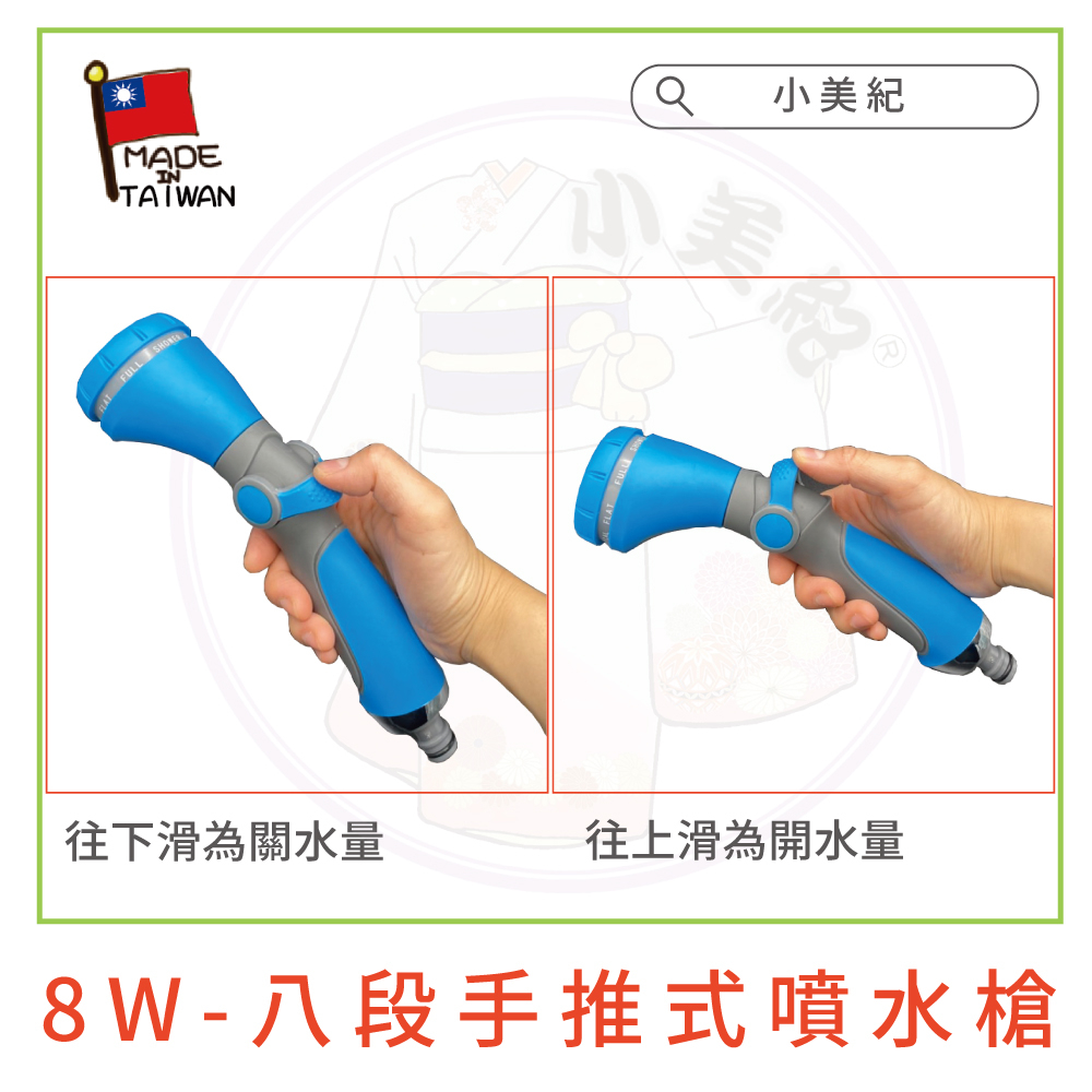 【小美紀】 八段手推式噴水槍 組合(園藝用品) 高級包紗水管 園藝澆水 灑水 澆花 洗車 水龍頭 小美紀噴水槍 高壓水管15台尺-整組八段手推式噴水槍|30台尺-整組八段手推式噴水槍|小美紀-八段手推式噴水槍(僅水槍)Gardening Tools小美紀 l Komiki