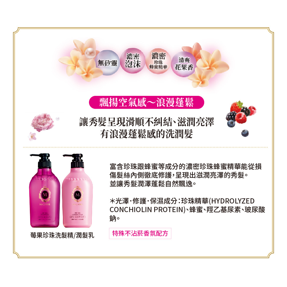 MACHERIE 瑪宣妮 珍珠洗髮/潤髮乳 莓果珍珠/蜜桃珍珠 450ml 【日本FineToday旗艦店】莓果潤髮1入|蜜桃潤髮1入|蜜桃洗髮1入|莓果洗髮1入Hair and Scalp Conditioner日本FineToday旗艦店 I 專科 I 思波綺I FINO I UNO