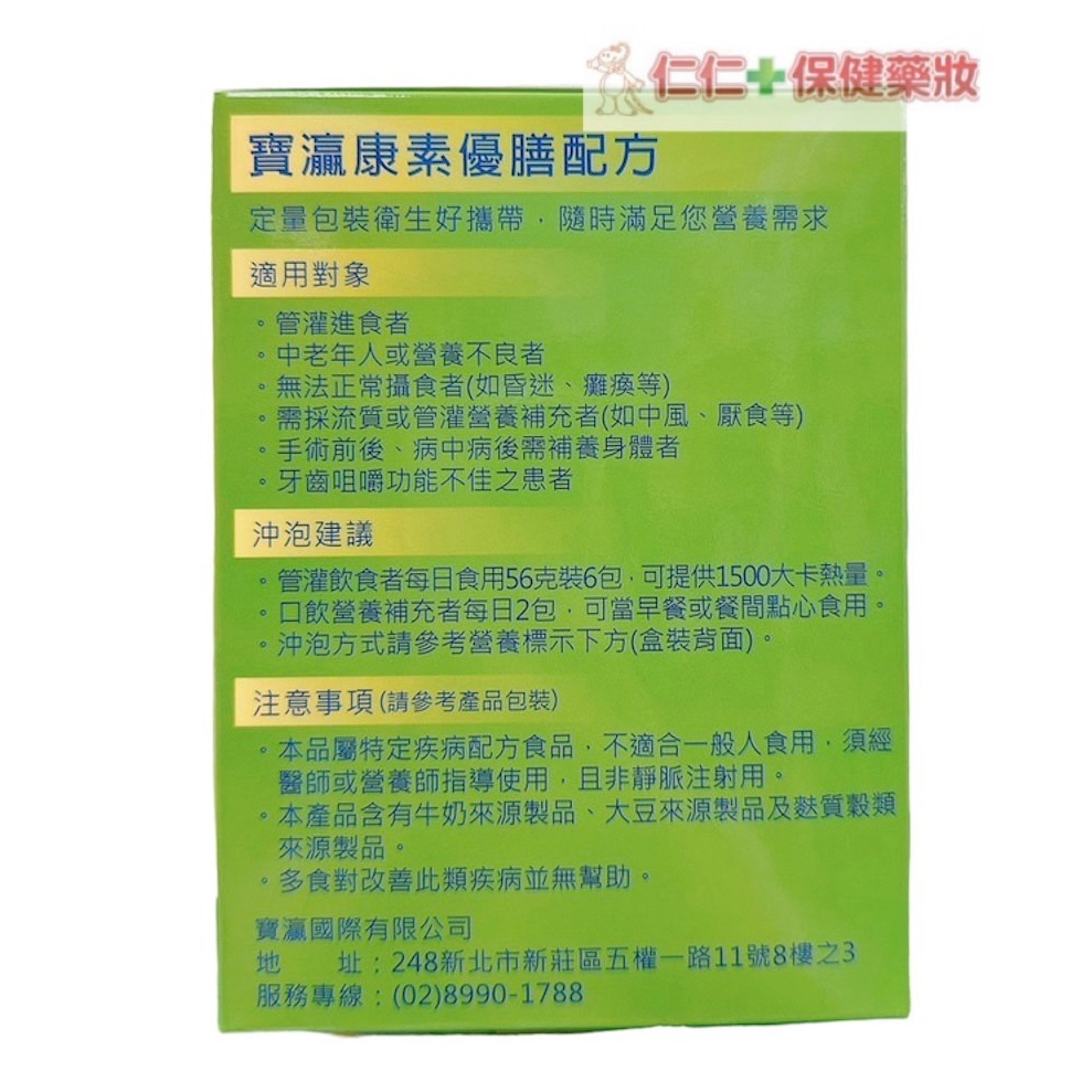 寶瀛康素 優膳配方 (56gx15包/盒)寶瀛康素 優膳配方 (56gx15包/盒)Milk仁仁藥局線上購物