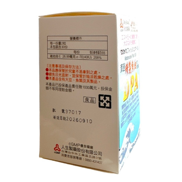 人生製藥 渡邊 精緻魚油DPA複方軟膠囊60粒/盒【仁仁藥局】人生製藥 渡邊 精緻魚油DPA複方軟膠囊60粒/盒【仁仁藥局】Well Being仁仁藥局線上購物