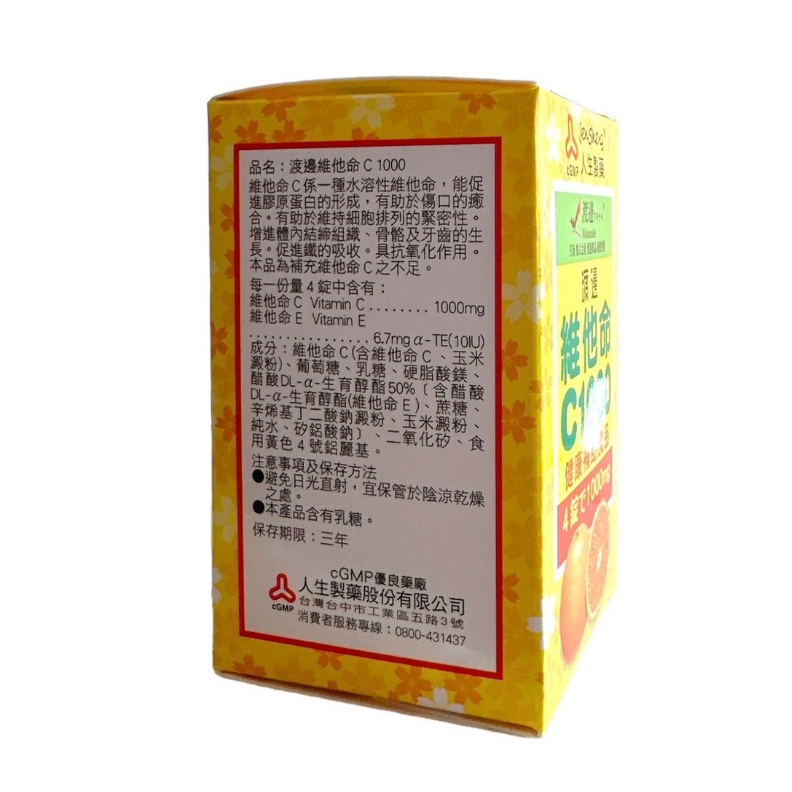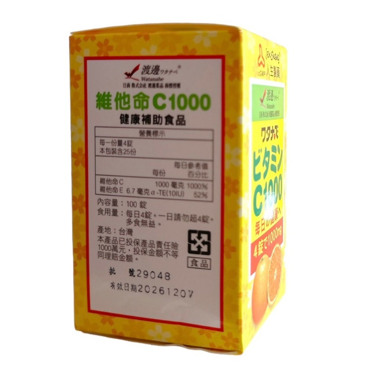 人生製藥 渡邊 維他命C1000 100粒/盒【仁仁藥局】人生製藥 渡邊 維他命C1000 100粒/盒【仁仁藥局】Beauty Supplements仁仁藥局線上購物