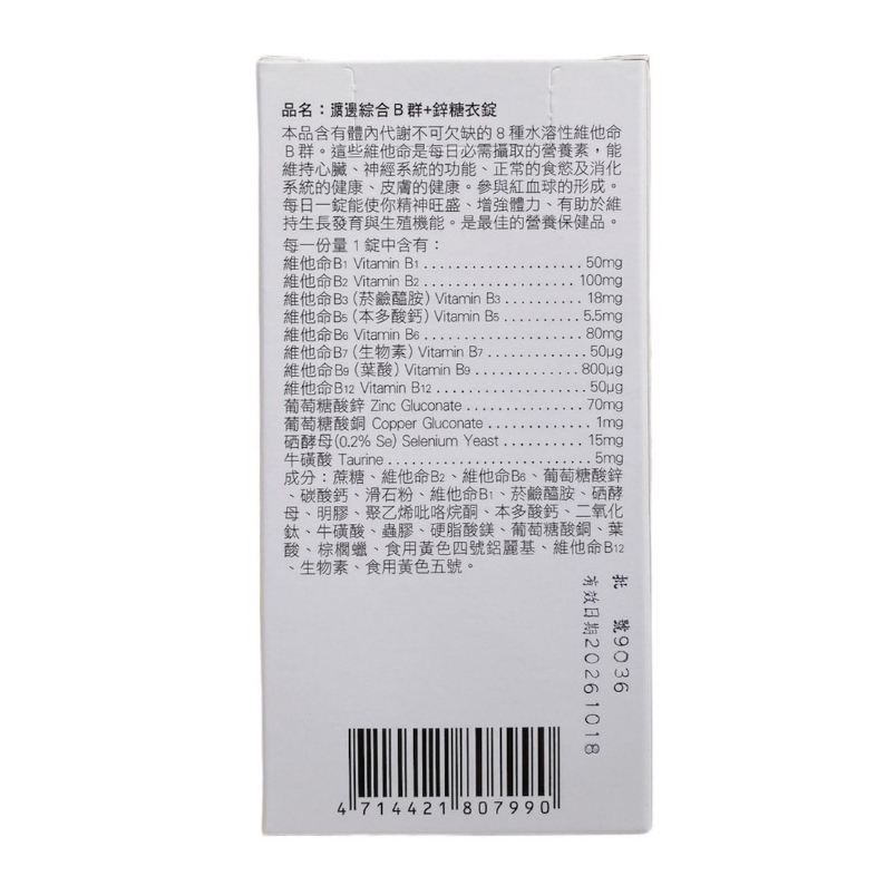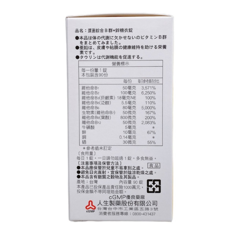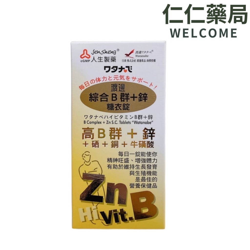 人生製藥 渡邊 綜合B群+鋅糖衣錠 90粒/盒【仁仁藥局】人生製藥 渡邊 綜合B群+鋅糖衣錠 90粒/盒【仁仁藥局】Well Being仁仁藥局線上購物