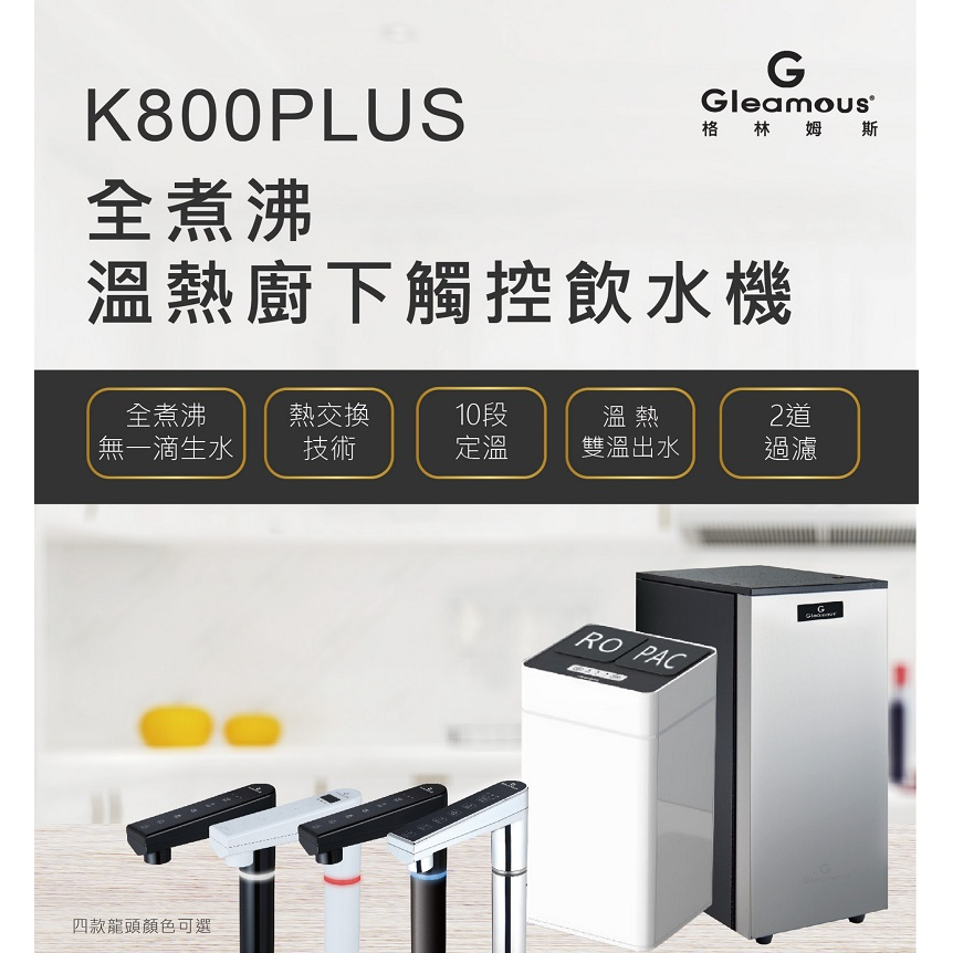 【Gleamous格林姆斯】K800PLUS雙溫廚下熱飲機【GRO600G直輸版|溫熱水均經煮沸|贈全台安裝】夜空黑|典雅白|消光黑|閃耀銀Water Filters, Coolers & Dispensers天溢淨水館TENFULL|3M|BRITA|宮黛|櫻花Sakura|飛利浦