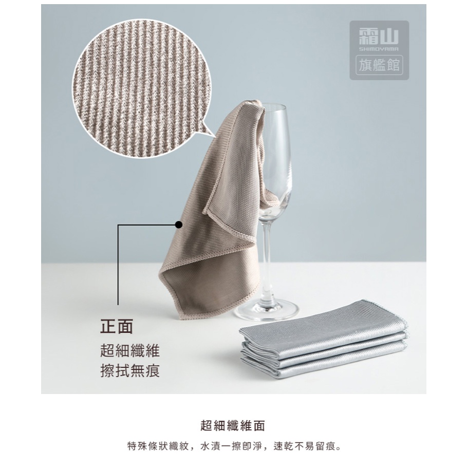 超細纖維玻璃鏡面無水痕抹布(30x30cm)-3條入【日本霜山旗艦館】淺咖Cleaning Cloths日本霜山SHIMOYAMA旗艦館|台灣獨家總代理