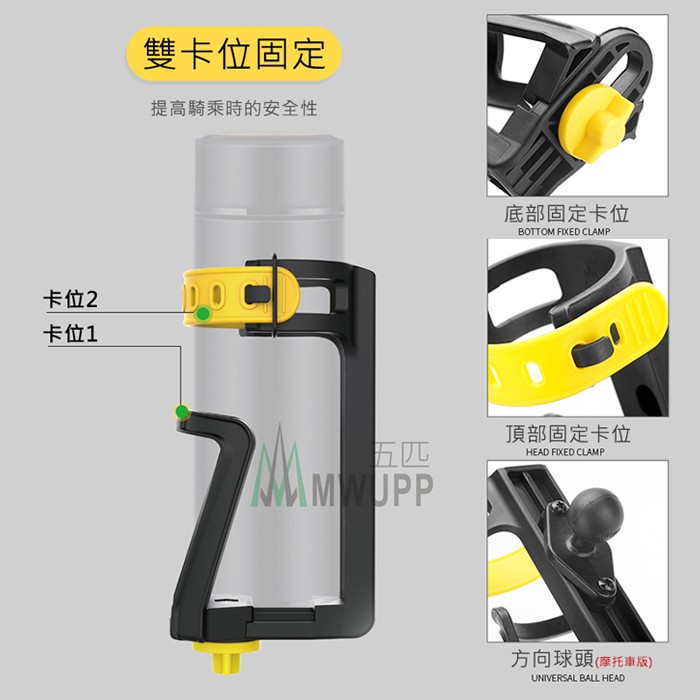 五匹 MWUPP 原廠配件 摩托車架 自行車 腳踏車 重機 水杯架 水壺架 杯架水杯架+短中柱+U行底座|水杯架(自行車用)|紀念版水杯架+短中柱+U行底座Phone Grips五匹 MWUPP 台灣官方旗艦店