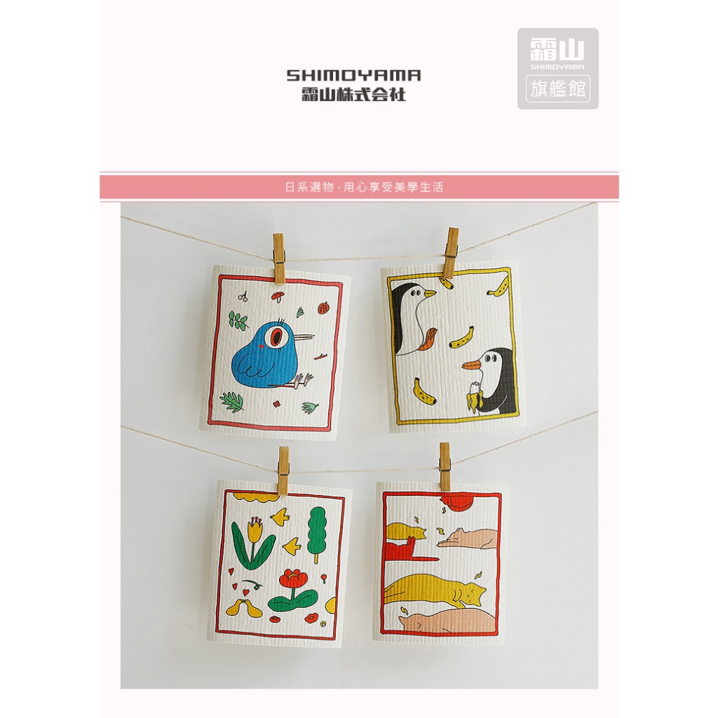 印花風乾濕兩用木漿棉清潔/抹布/洗碗布-4張入組-多色可選 印花抹布 【日本霜山旗艦館】A款|B款|C款Cleaning Cloths日本霜山SHIMOYAMA旗艦館|台灣獨家總代理