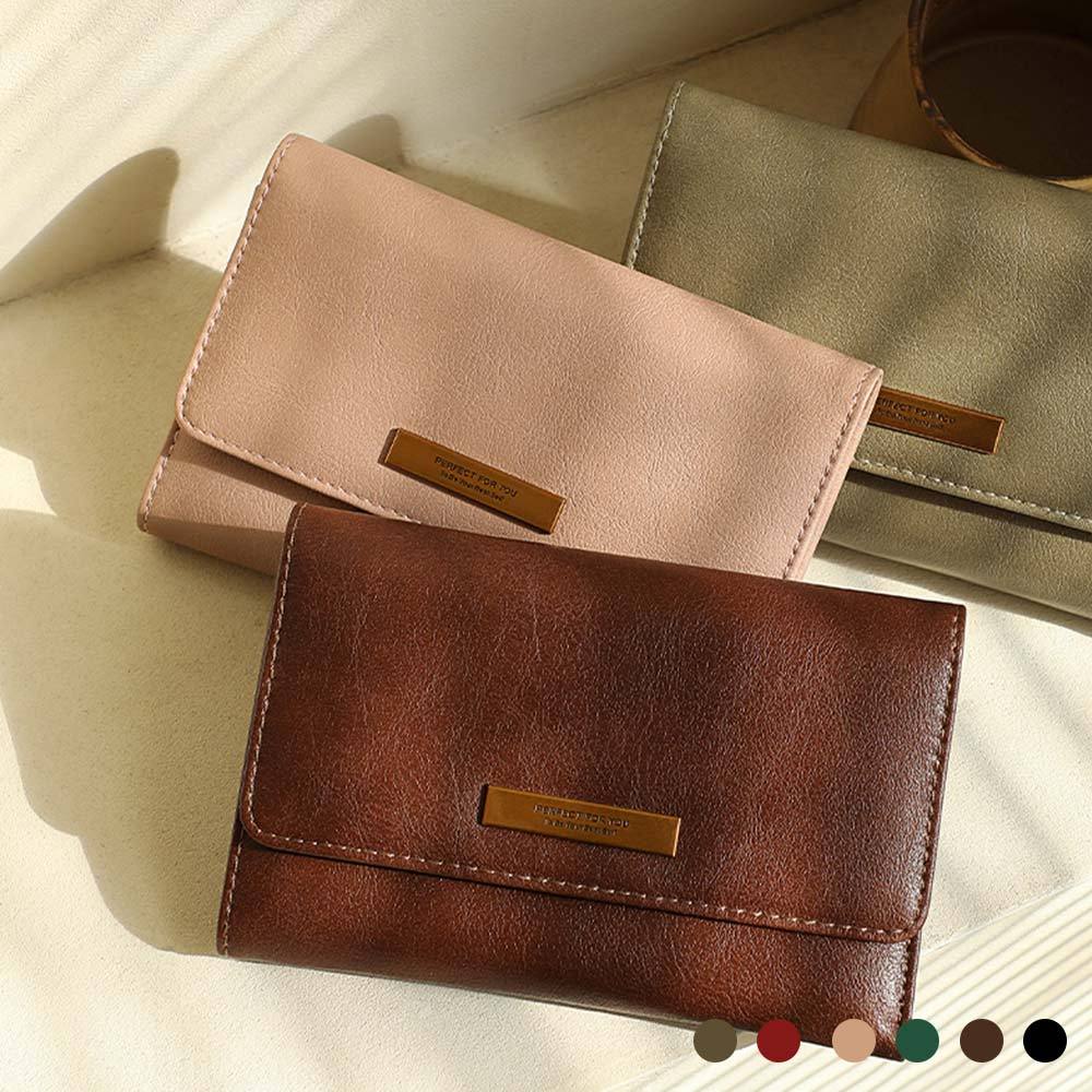 天藍小舖-復古雲霧皮革三折中夾-共6色-A08081835黑色|綠色|大紅|灰色|粉色|棕色Bifold & Trifold Wallets天藍小舖 SkyBlue