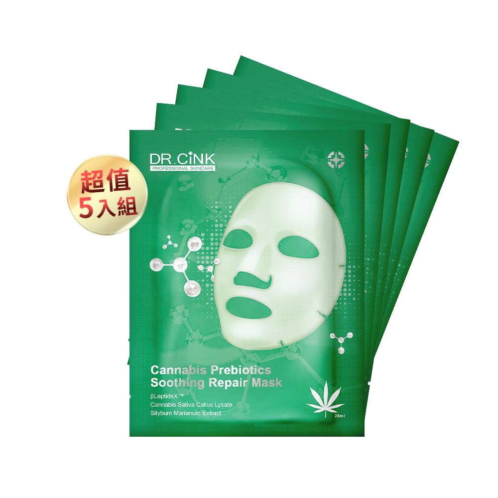 面膜系列 大麻益生元舒緩面膜5入組 控油 煥膚 收斂毛孔大麻舒緩面膜x5Face Mask & Packs天幕網路商店