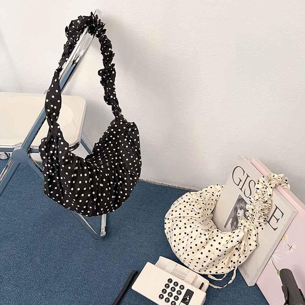 天藍小舖-黑白小圓點抽皺肩背包-共2色-A15153114