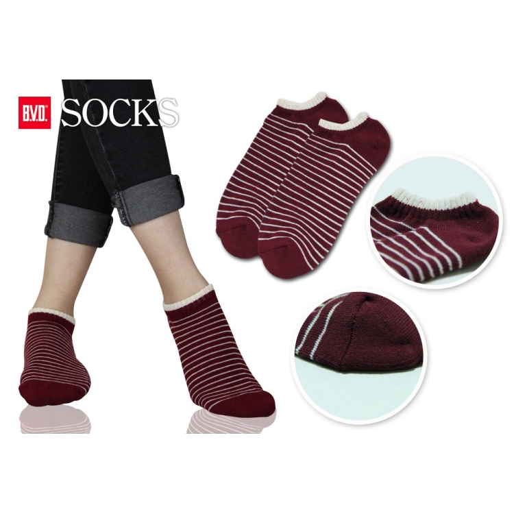 BVD 條紋毛巾底女踝襪B208(1雙入)【小三美日】D090214黑色|麻卡其|麻酒紅|灰粉|灰綠Socks小三美日