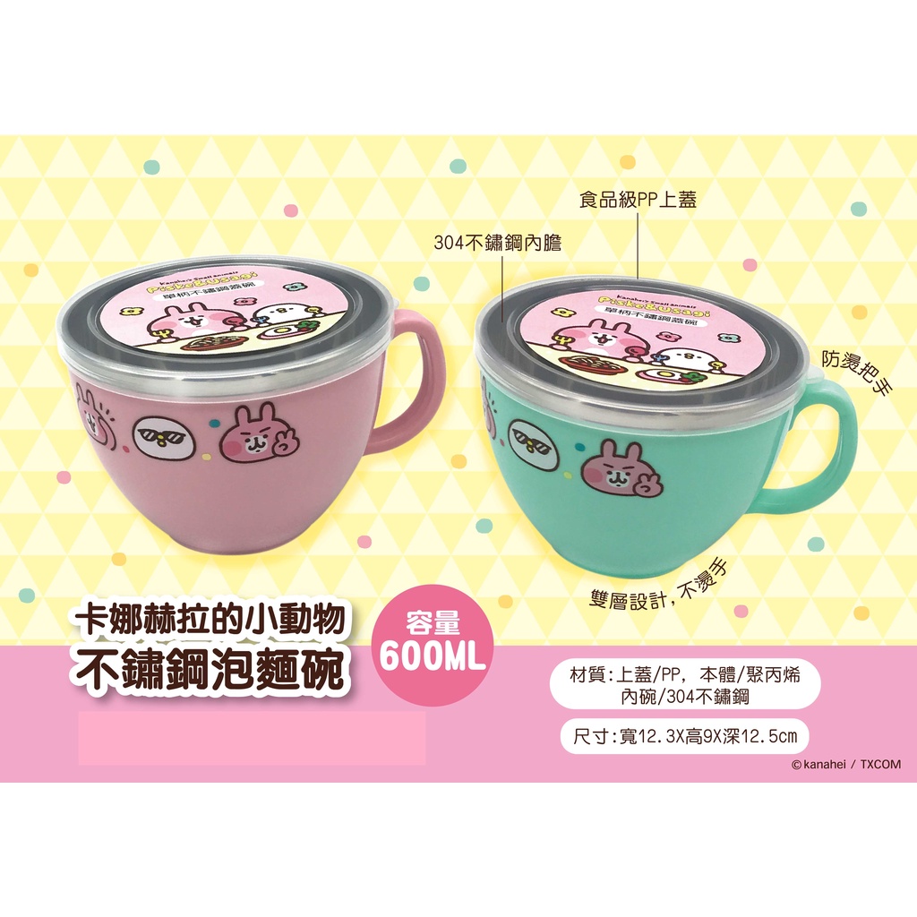 卡娜赫拉的小動物不鏽鋼泡麵碗600ml【台灣正版現貨】淺綠|粉紅Bowls小朋友上學趣