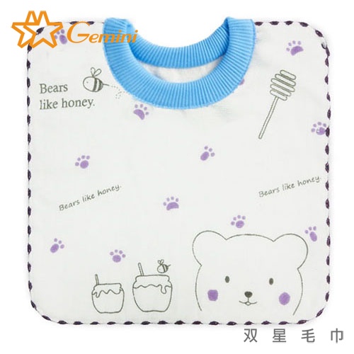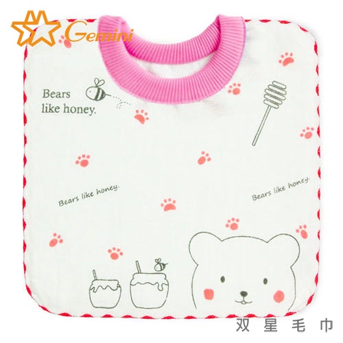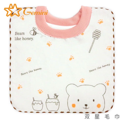 【双星毛巾Gemini】蜂蜜小熊紗布圍兜|吸汗快乾|透氣舒適耐用|口水巾 吃飯巾|寶寶專用 毛巾布圍兜褐色(領口配色為隨機出貨)|粉色(領口配色為隨機出貨)|紫色(領口配色為隨機出貨)Bibs双星毛巾 Gemini Towel 品牌旗艦館