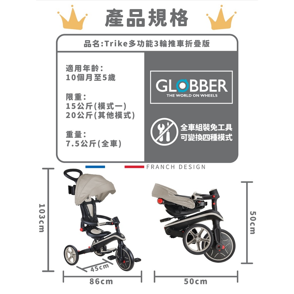 哥輪步【領卷折200贈-保溫罐】GLOBBER 4合1 Trike多功能3輪推車折疊版|折疊三輪車|平衡車【六甲媽咪】莫藍迪藍綠|城市野營綠|乾燥玫瑰粉|法式燕麥色|超跑賽車紅|法國紳士黑Sports & Outdoor Play六甲媽咪親子生活館