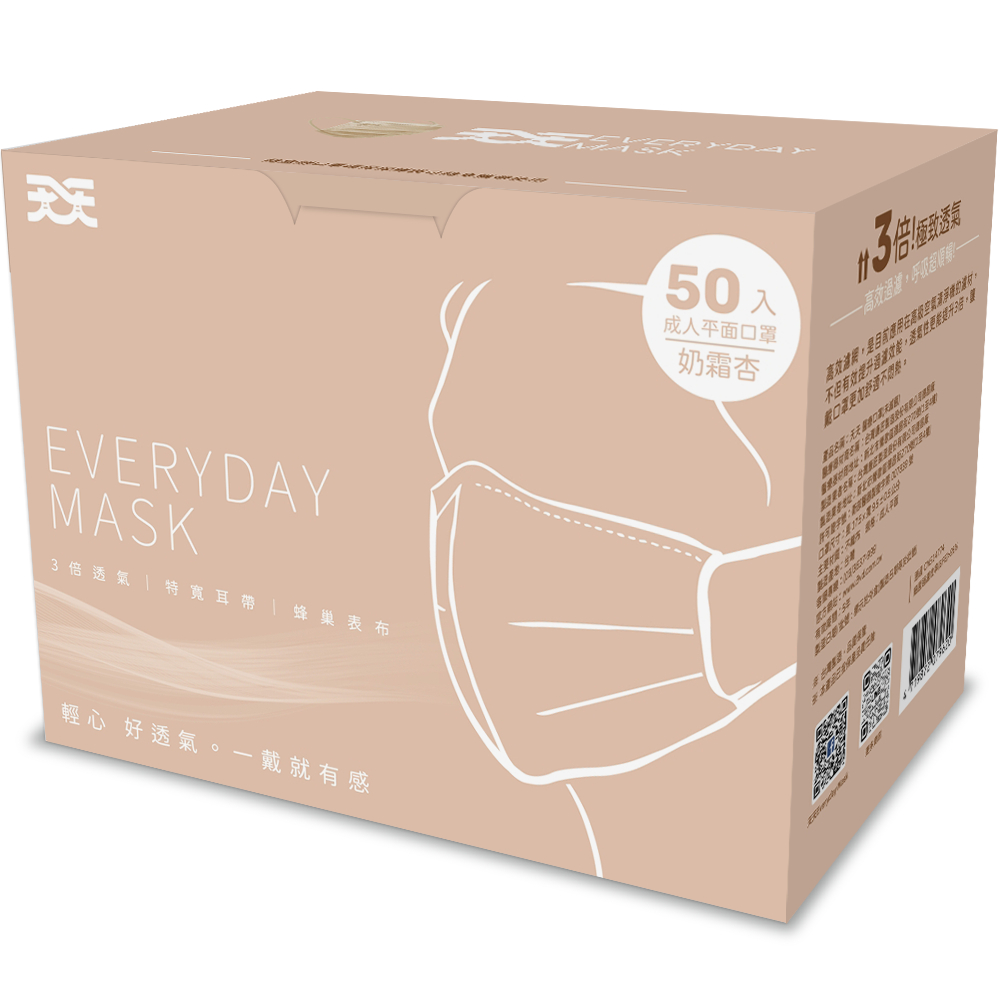 天天醫療成人平面口罩-輕心系列(奶霜杏)-50入/盒天天醫療成人平面口罩-輕心系列(奶霜杏)-50入/盒Medical Gloves & Masks天天防護口罩