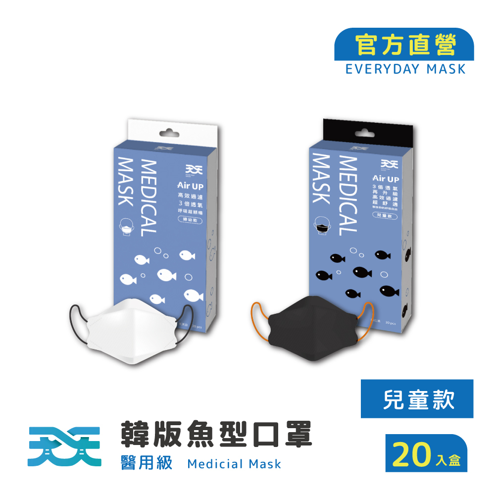 【天天】韓版魚型醫療級口罩,兒童款,20入/盒 (兩色可選)隕石黑|珍珠白Medical Gloves & Masks天天防護口罩