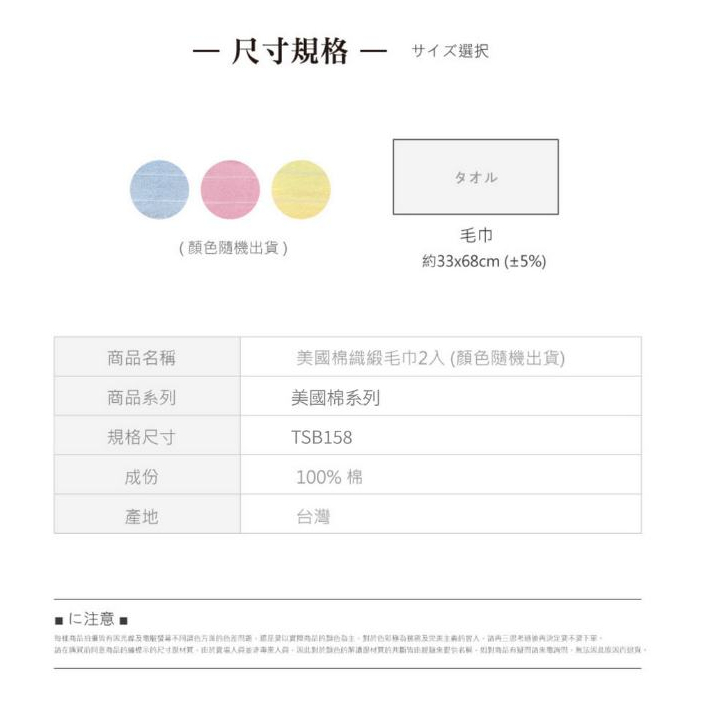 【双星毛巾Gemini】台灣製 美國棉織緞毛巾(2入組,顏色隨機出貨) | 吸水快乾 輕薄舒適(顏色隨機,恕無法挑色)Towels & Bathrobes双星毛巾 Gemini Towel 品牌旗艦館