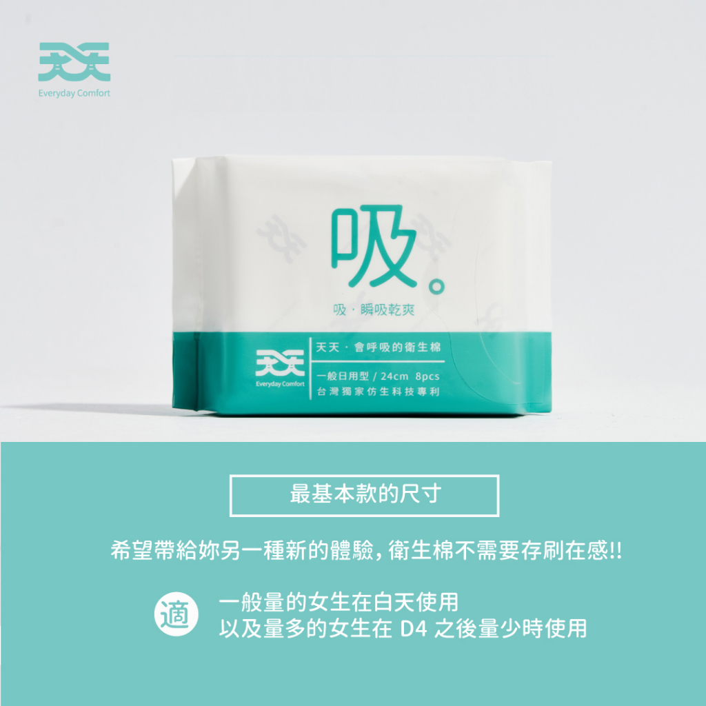 【天天衛生棉】瞬吸乾爽-一般日用型24cm(8片/包)單包Feminine Care天天防護口罩