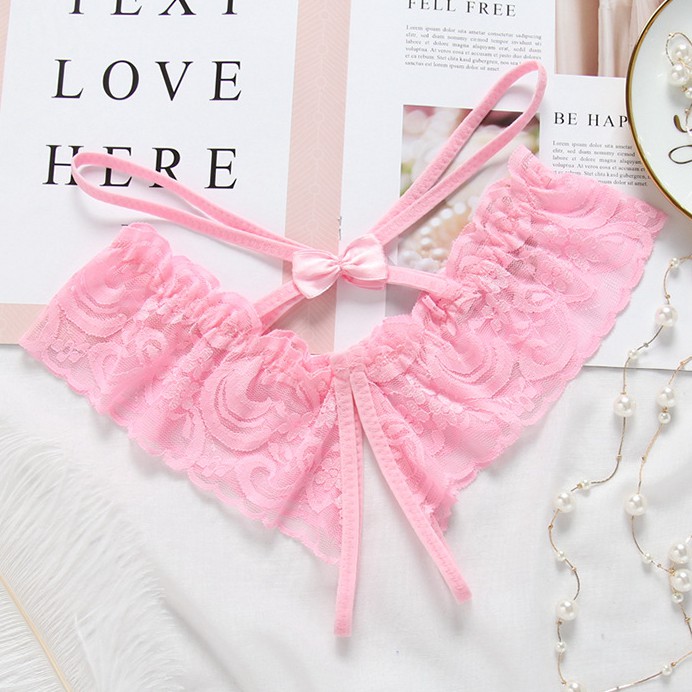 天使衣裳正品 日系情趣內褲 性感蕾絲蝴蝶結低腰開襠丁字褲 可愛內褲 少女 誘惑 迷人 美臀 C239 天使衣裳
