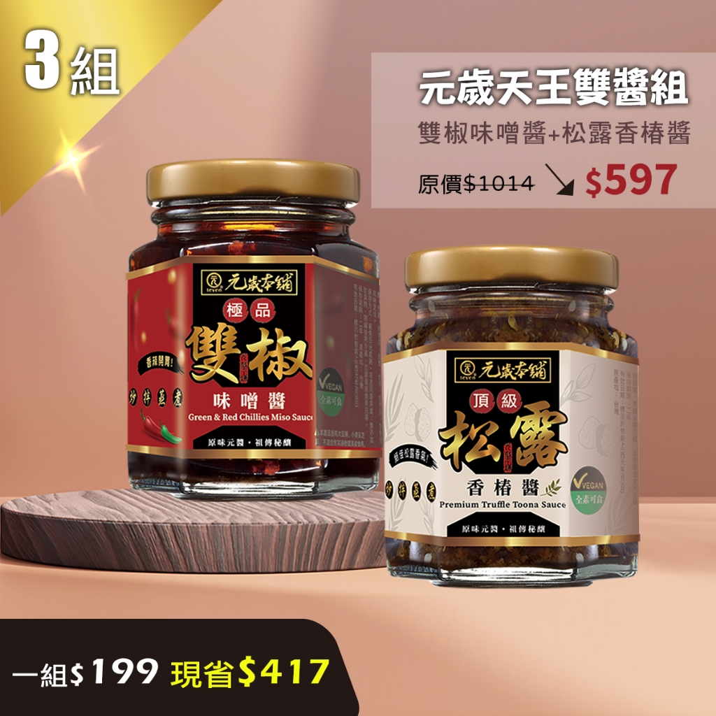 【元歲本舖】新品嘗鮮 元歲天王雙醬組(極品雙椒味噌醬+頂級松露香椿醬) 3組【元歲本舖】新品嘗鮮 元歲天王雙醬組(極品雙椒味噌醬+頂級松露香椿醬) 3組Seasonings & Condiments元歲本舖