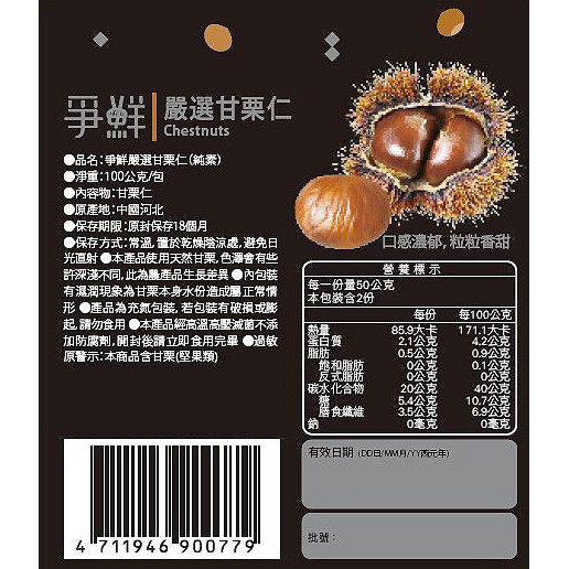 爭鮮 嚴選甘栗仁100g(純素)【小三美日】 DS001411單一Nuts小三美日