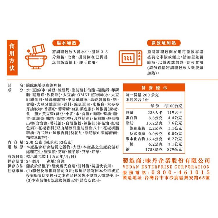 味丹 隨緣調理包(全素)1包入 款式可選 快餐包 料理包 純素 素食 輕鬆料理 拌飯 拌麵【小三美日】DS024168麻婆豆腐|泰式紅咖哩|香菇肉燥|薑黃椰香咖哩Cooked Food小三美日