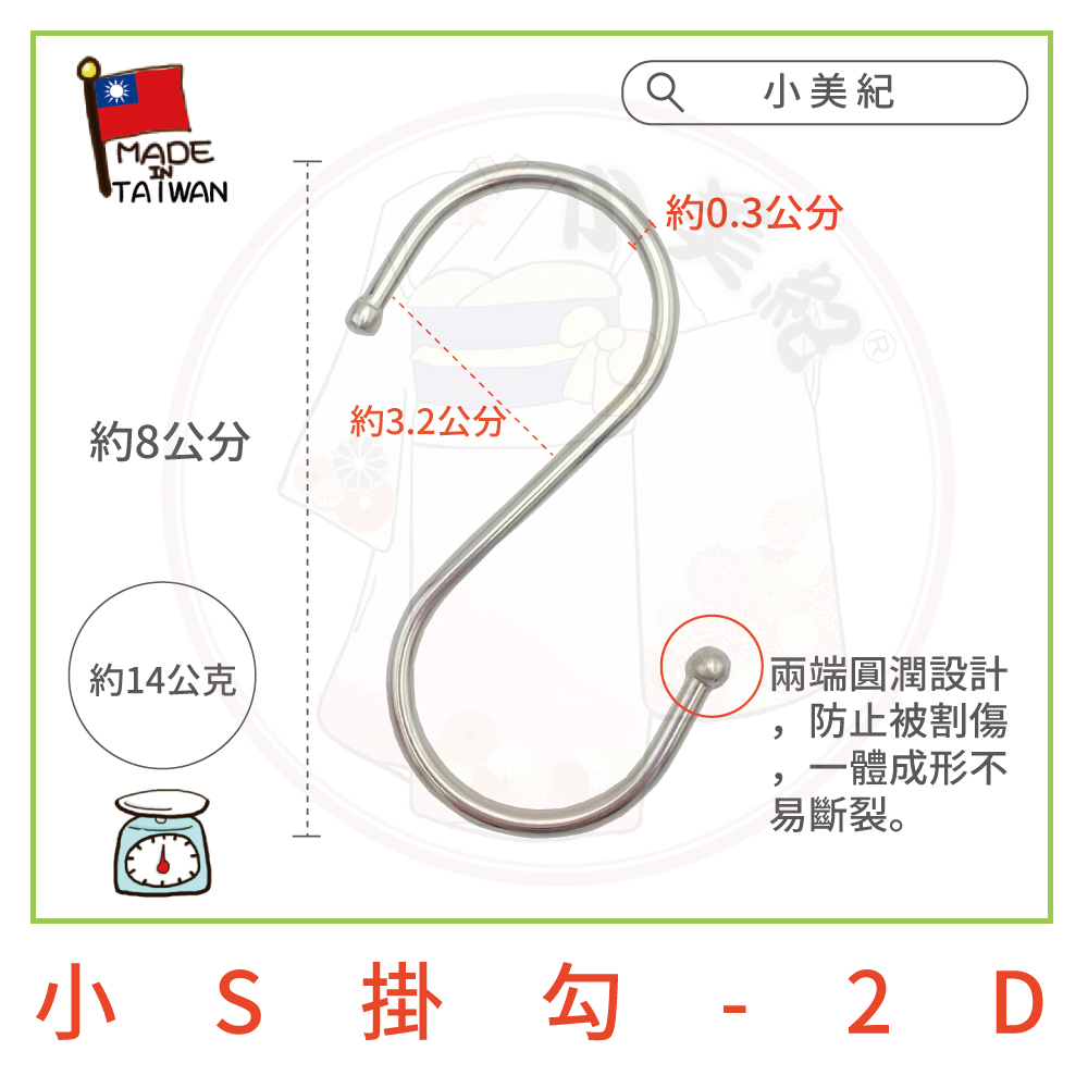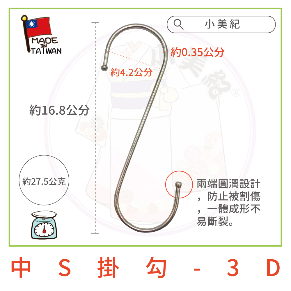 【小美紀】不割手 不鏽鋼 S掛勾(居家用品)衣帽掛勾 廚房掛勾 浴室掛勾 園藝掛勾 s鉤 s勾 廚房用品 安全掛勾 掛鉤單1入-白鋼中尺寸S掛勾-3D|單1入-白鋼迷你尺寸S掛勾-1D|單1入-白鋼小尺寸S掛勾-2DHooks小美紀 l Komiki