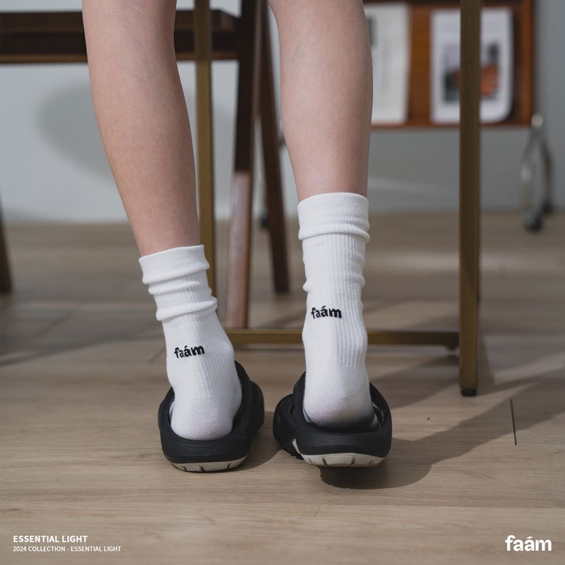 faam – NTME012-13 ESSENTIAL LIGHT 輕量素面 雙色針織 運動襪 / 中筒襪 (煥白色)煥白色 男女可穿 22cm~28cm化學原宿 Chemistry