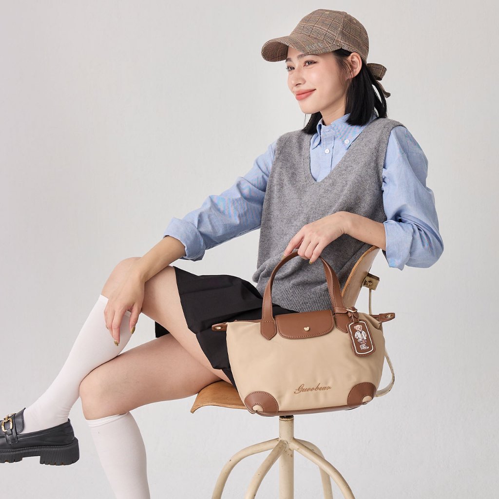 天藍小舖-GUOO BEAR紳士小熊尼龍手提/斜背水餃包-共3色-A15153127卡其|淺粉|黑色天藍小舖 SkyBlue