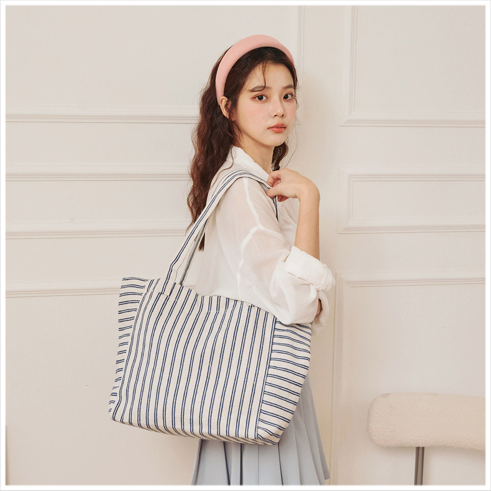 天藍小舖-雙條紋拼接棉麻肩背子母包-共3色-A15153144