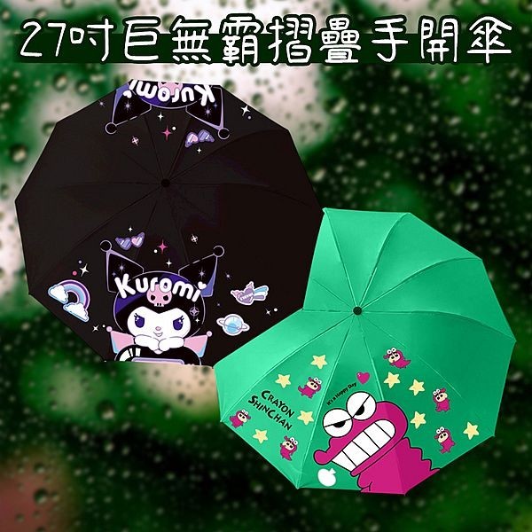 御衣坊 27吋巨無霸摺疊手開傘 ( 蠟筆小新 / 庫洛米 )1入 摺疊傘 晴雨傘 雨傘 遮陽【小三美日】DS026569蠟筆小新(鱷魚餅乾綠色款)|酷洛米(夢幻星球款)Umbrellas小三美日