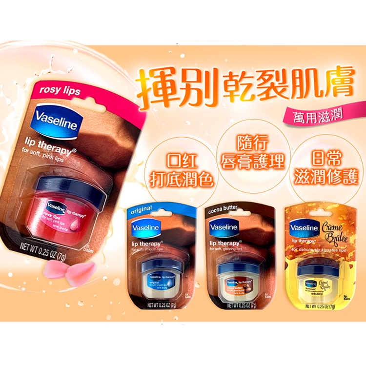 Vaseline 凡士林 Q版瓶裝護唇膏(7g)【小三美日】D206779原味|玫瑰|可可|焦糖布蕾Lip Treatment小三美日