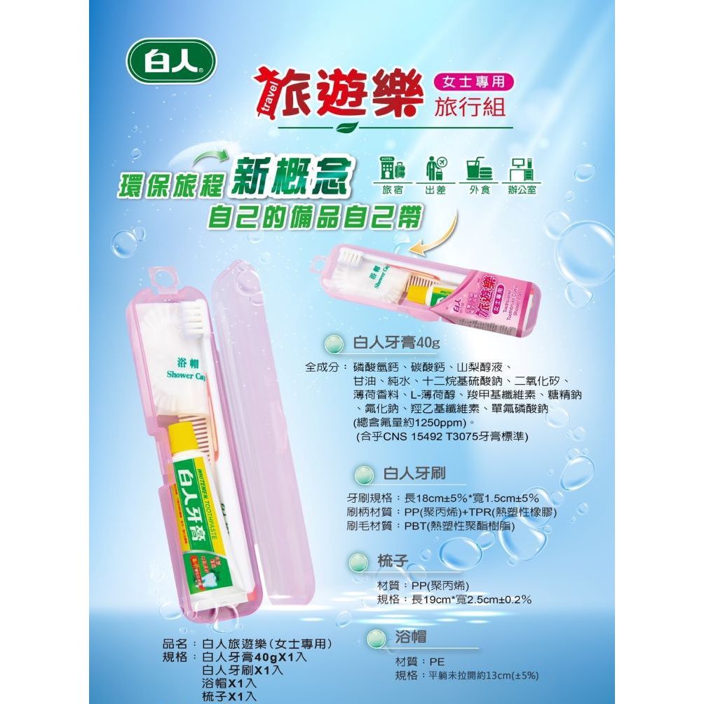 白人 旅遊樂旅行組(1入) 女士專用/男士專用 款式可選 顏色隨機出貨【小三美日】DS015202(牙膏+牙刷+梳子+浴帽)女士專用|(牙膏+牙刷+梳子+刮鬍刀+刮鬍膏)男士Oral Care小三美日