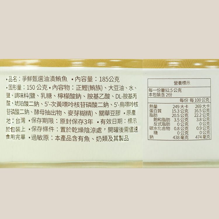 爭鮮 油漬鮪魚罐頭 (185g) 上易開拉環 開罐即食 罐頭 鮪魚罐頭 露營 配飯【小三美日】空運禁送 DS025930單一Canned Food小三美日